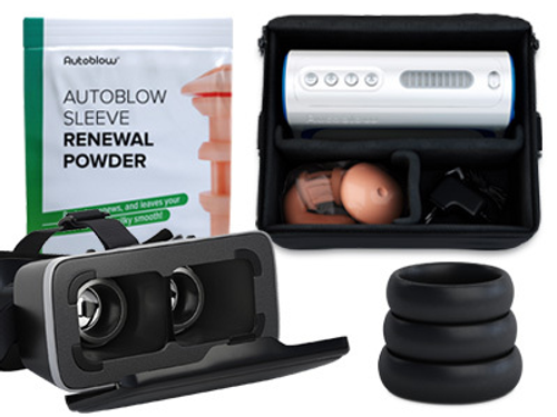 If you’re the kind of guy who like to have it all AND save money at the same time, keep reading! This package deal contains all the goodies – the sleeve renewal powder to protect your investment in sleeves, the custom made storage case that holds your Autoblow with its sleeves and plug, the VR headset you can use to watch free VR porn videos using your smartphone, and a set of 100% silicone penis rings to prolong your erections! Buy them all at once and enjoy a HUGE discount off of the regular individual item pricing!