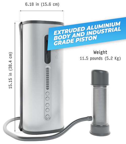 VacuGlide is a 14 pound machine built from the finest materials to provide unmatched pleasure on demand. The shell is made from extruded aluminum and all of its internal parts are made from steel, copper, and brass.