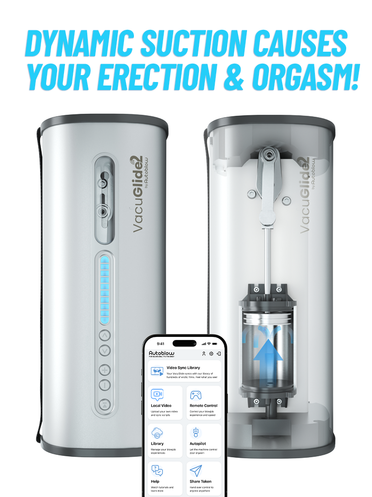 Vacuglide 2 provided me with the best orgasms I've ever had in my 47 years of being alive. I don't just watch porn anymore - I feel it while being sucked off. If there is a better way to watch a blowjob video than syncing Vacuglide 2 with the video library, I'd like to know what that is! I was a very happy VacuGglide 1 customer who has had the luck and opportunity to be a tester for VacuGlide 2 about two months before it was released to the public. I even helped find and fix a couple of bugs in the web app, especially in the library section. Vacuglide has changed the way I think about pleasure because previously I had been using whatever cheap stuff I found on Amazon. I thought that rubber butts were the way, and I was wrong. I think what makes Vacuglide so good, not even talking about the new features, is how sensually it sucks. I prefer the slowest settings which were improved on Vacuglide 2, and I like to build up to my orgasm, not after 5 minutes, but maybe after 50 minutes or sometimes even an hour, and the new Vacuglide lets me do that. My preferred way to use Vacuglide is actually with a Fleshlight Go stroker with the newer silicone vacuum cap attached to it. I dangle that from the Vacuglide milking mount and this lets me enjoy the VG totally hands-free and with the more human-like feel of the inside of a fleshlight. I've also rigged up something that's like the stroker keeper and connected that to the Fleshlight so that the Fleshlight is basically glued to my cock. One day, if I'm feeling adventurous, I might take a video and post it to their demo site. I think this review got a bit long, but I'll make it short here at the end. This masturbation tool will make your life better. Go for it.