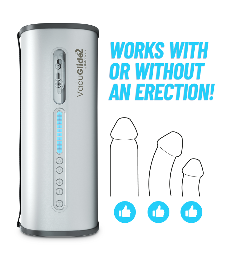 With VacuGlide 2, you’ll have full digital control of the speed of your blowjob, its suction level, and the portion of your penis sucked. Circumcised or uncircumcised, flaccid or erect, VacuGlide just works. Strokes 10-225 times per minute.
